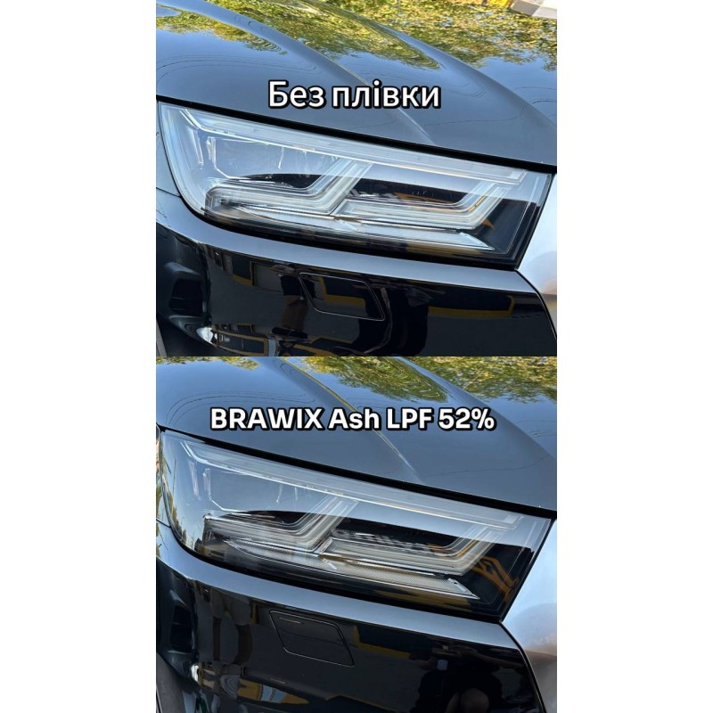 Антигравійна поліуретанова плівка BRAWIX Ash PPF з затемненням - для захисту оптики від відколів і подряпин. Матеріал має спеціальний тонований шар, завдяки якому плівка на оптиці створює ефект красивого затемнення оптики.