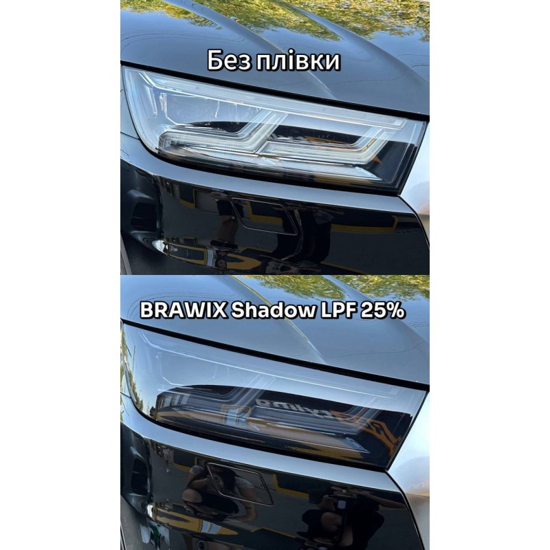 Антигравійна поліуретанова плівка BRAWIX Shadow PPF з затемненням - для захисту оптики від відколів і подряпин. Матеріал має спеціальний тонований шар, завдяки якому плівка на оптиці створює ефект красивого затемнення оптики.