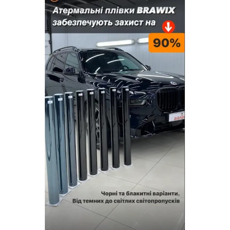 Атермальна плівка тонування BRAWIX® Black Ice дозволить надійно захистити лобове та бокові вікна.