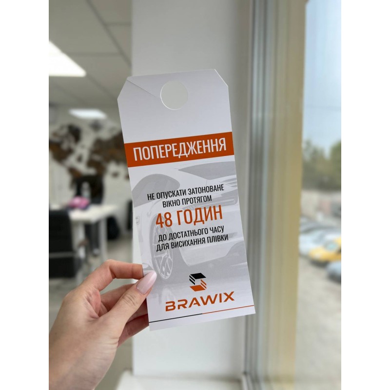 Брошура-нагадування для клієнтів, що не можна опускати вікна після тонування протягом 48 годин.