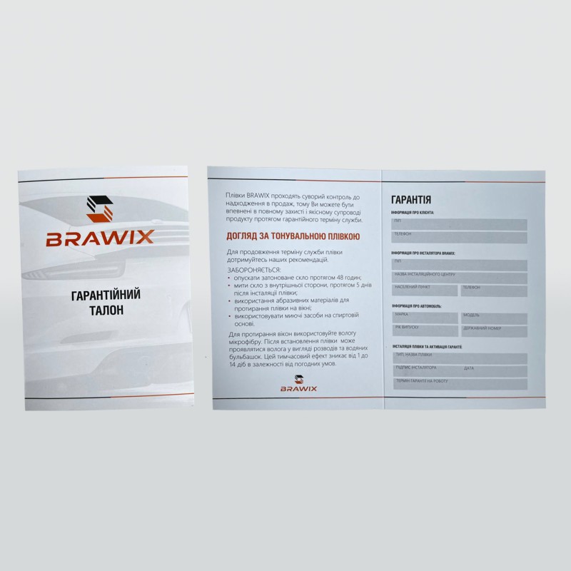 Гарантійний талон BRAWIX PPF (для тонувальної плівки)
