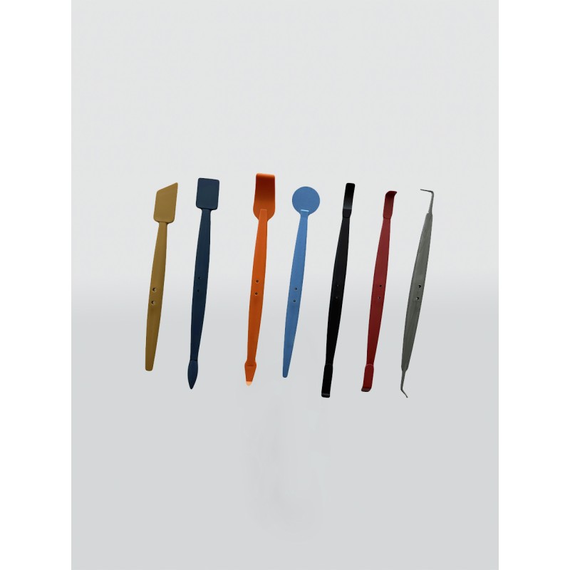 Набір для заправки кромки з 7-х інструментів різної жорсткості в компактному пластиковому чохлі.