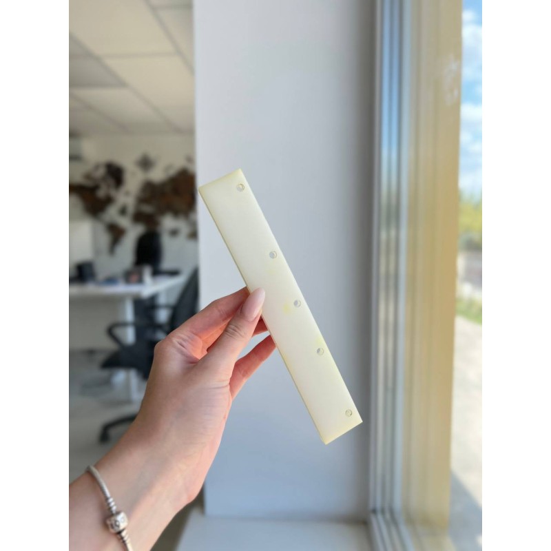 Поліуретанова вставка застосовується для віджиму води при наклейці архітектурних плівок на плоскі скла. Поліуретан має жорсткість необхідну для роботи як зі звичайними тонувальними і декоративними плівками, так і для роботи з протиударними плівками. Велика ширина (20см) дозволяє швидко виробляти віджимання води широкої смуги плівки.