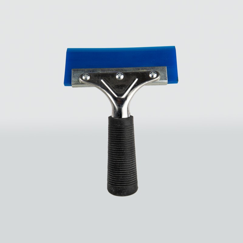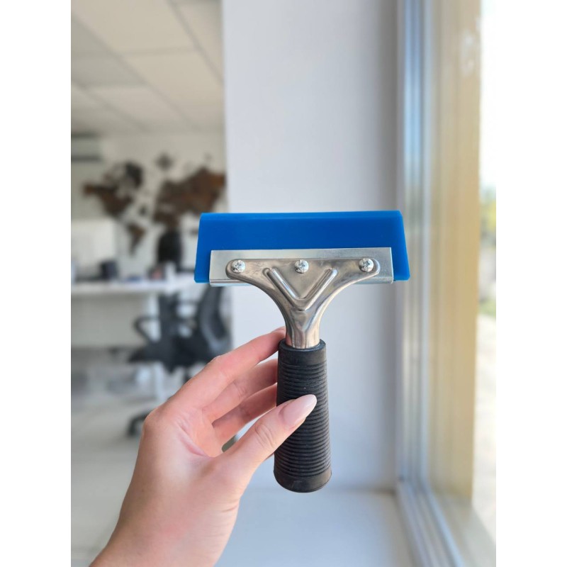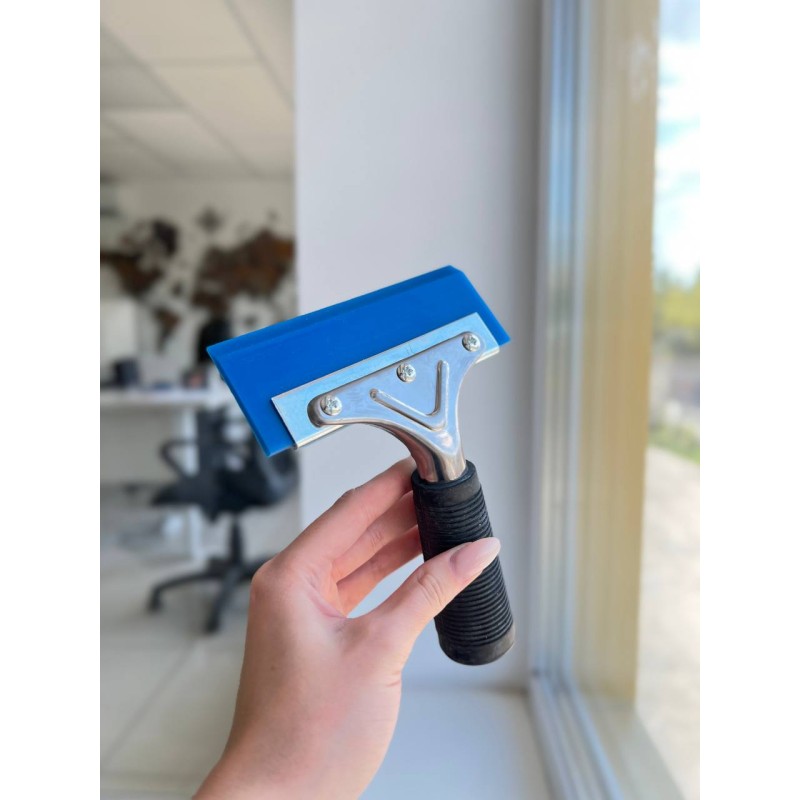 Ракель синій поліуретановий з металевою прогумованою ручкою утримувачем.