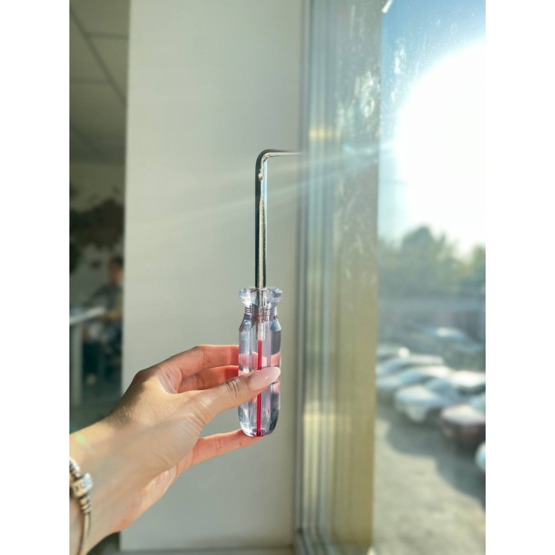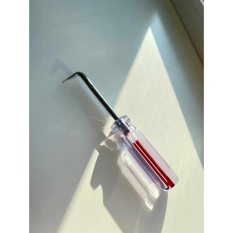 Дуже зручний і потужний інструмент. Гачок багатоцільового використання, потрібен там де потрібно підчепити і смикнути. Металева частина гака виконана з інструментальної розжареної сталі, абсолютно не згинається. Ручка зручна, в руці не ковзає. Основне використання це зняття ущільнювачів з дверних карт, зняття штапиків з металопластикових вікон і т. д.