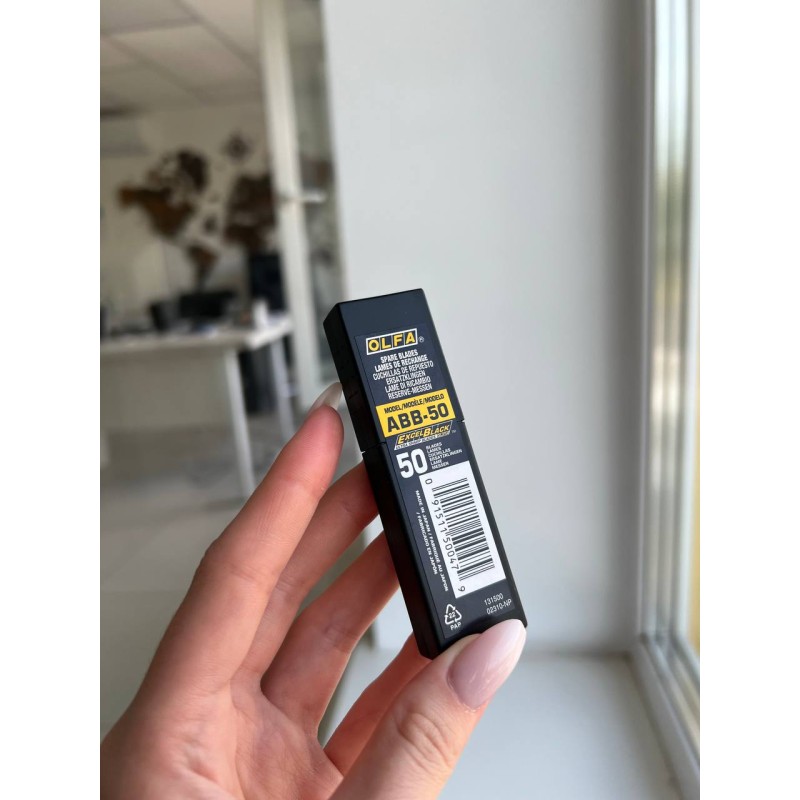 Леза OLFA ABB-50 з вуглецевої (карбонової) сталі для ножа 9 мм - застосовується як ріжуче лезо в ножах OLFA з сегментними лезами шириною 9 мм, а також аналогічними ножами інших виробників під леза 9 мм.
