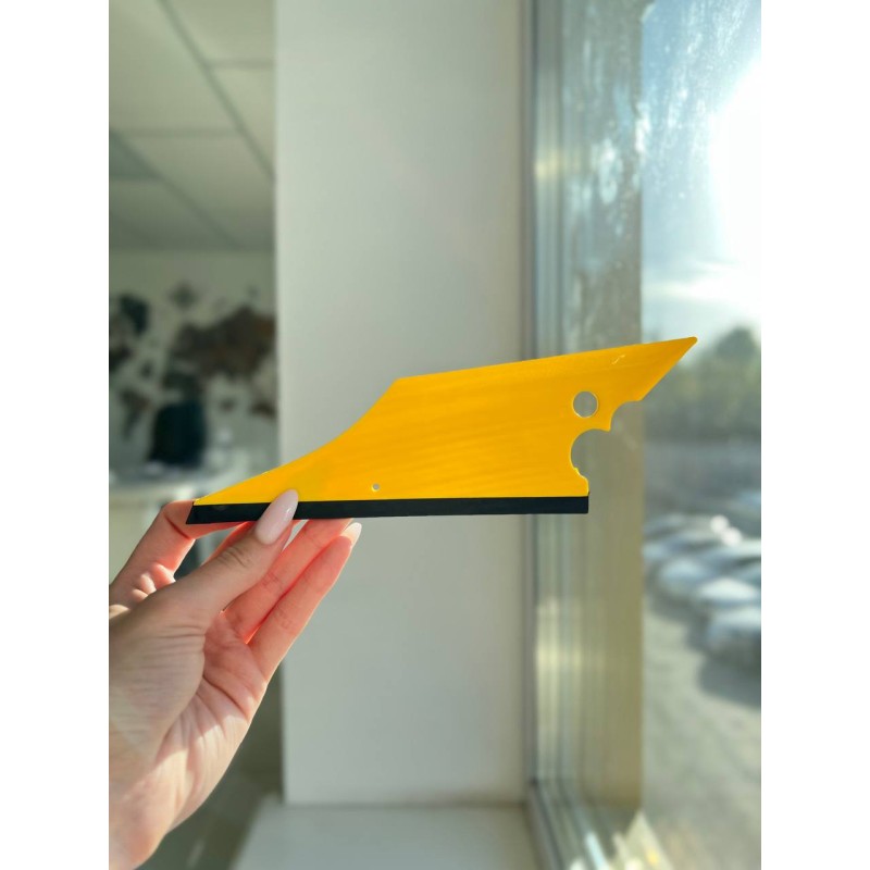 Ракель "Conquistador" (конкістадор) Premium чорний з жовтим кантом середньої жорсткості - універсальний інструмент, завдяки своїй формі використовується для різноманітних операцій при тонуванні.